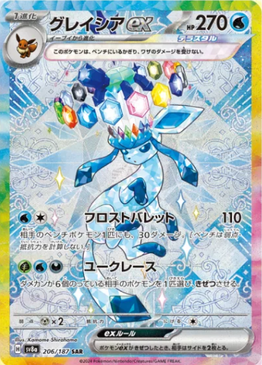 Her er den Japanske versjonen av Prismatic Evolutions, hvor du får hits i hver pakke og hver booster box har en garantert SAR Pokemon hit. Terastal Festival er virkelig som en festival av Eeveelusjoner og hits etter hits. Og til å med sjangse for GOD PACK